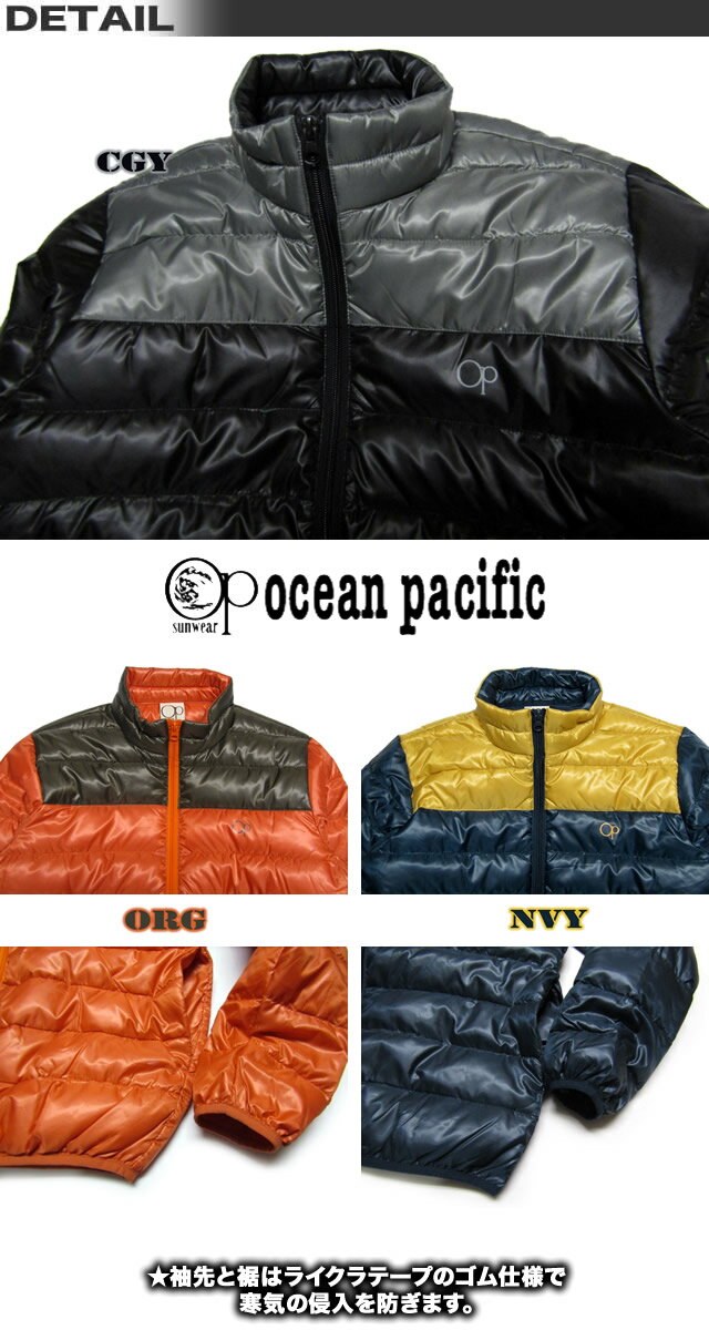 OP/オーシャンパシフィック ライトダウンジャケット 【OCEANPACIFIC MENS/オーシャンパシフィックメンズ】 ■インターナショナルサーフブランド"OPオーシャンパシフィック"の サラッとした手触りのタフタ素材を使用したダウンジャケットで 非常にライトに着られるアウターです。